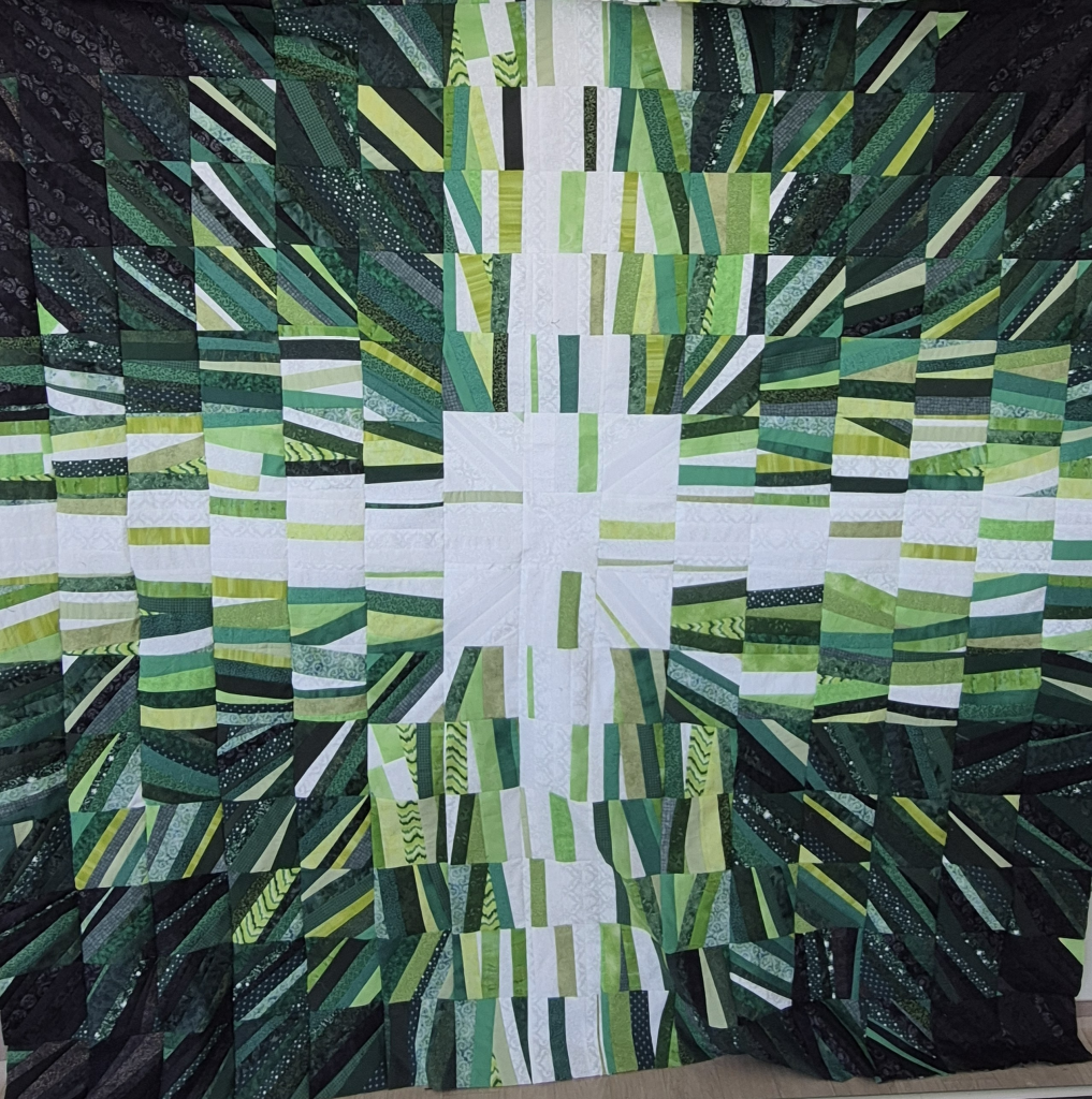 I’ve made several string quilts, and that’s what the background reminded me of.